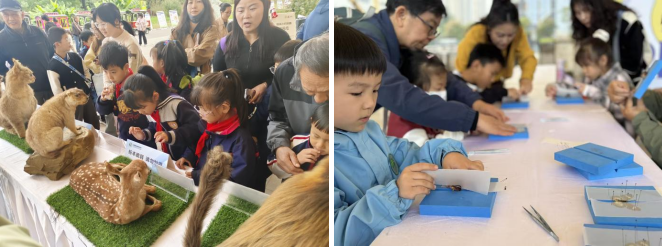 在标本展示区,朱鹮、林麝、红腹锦鸡、金丝猴等秦岭珍稀野生动物标本整齐陈立,科研人员结合标本详细介绍物种特征、生活习性及?;は肿?;互动体验区,蝴蝶标本制作深受小朋友喜爱,家长带着孩子一起动手,在动手制作中学习动物知识。