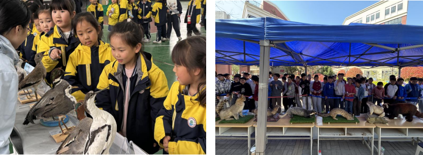 标本展览零距离探秘。?鸟类、兽类、昆虫等数十件珍稀动物标本在校园里"安家",构建起一座移动的"自然博物馆"??破杖嗽敝鹨唤彩霰瓯颈澈蟮纳适?,引导同学们近距离观察动物形态特征,直观感受自然生命的精妙与神奇。