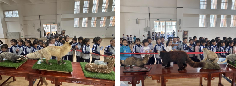 4月2日,西安市浐灞御锦城小学活动现场,精心布置的动物标本展成为校园里最亮眼的“自然风景线”。吸引了同学们驻足,在科普人员的细致讲解下,同学们了解不同动物的身体结构、生活环境及?;ぜ侗?,认识到生物多样性?;さ闹匾浴K且槐吖鄄煲槐呒锹?,不时提出自己的疑问,在沉浸式参观中拓宽了自然科学视野,树立起“爱护动物、?;ぷ匀弧钡幕繁@砟睢?/p>