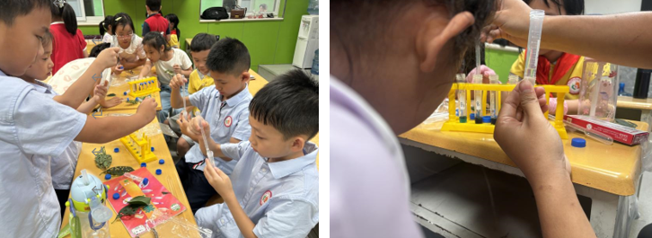 在课堂上,同学们在科普老师的指导下,通过自己的动手,看到了实验过程中发生的变化,同样也感受到了科学的神奇之处。